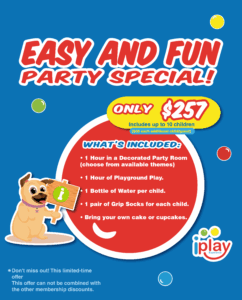 NEW: Now you can choose any party theme you want that is not shown in our website, for $120 extra, must make your request 4 weeks in advance (Theme decoration to remain at iPlay).